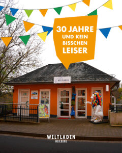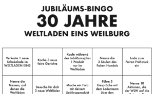 Kaum zu glauben, aber wahr: Unser Weltladen EINS in Weilburg wird 30 Jahre alt! Zur Feier dieses besonderen Jubiläums haben wir uns etwas ganz Besonderes für euch ausgedacht: Das Große Jubiläums-Bingo.